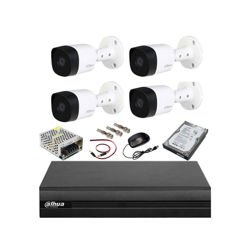پکیج 4 دوربین داهوا فوق شامل 4 عدد دوربین دیواری پلاستیکی مدل HAC-B1A21P دوربین ها دارای زاویه دید 106درجه و دید در شب بوده و تا 20 متر مربع را در شب پوشش میدهد . یک عدد دستگاه 4 کانال داهوا مدل XVR-1B04 که قابلیت اتصال 4 عدد دوربین HD و 1 عدد دوربین شبکه (IP CAMERA) را دارد. و ساپورت دوربین و ضبط تا کیفیت 2 مگاپیکسل را دارد و علاوه بر ساپورت دوربین های سی وی آر قابلیت اتصال دوربین انالوگ، TVI ،CVI ،AHD را نیز دارد. این دستگاه دارای یک عدد ورودی صدا و یک عدد خروجی صدا، خروجی HDMI ،VGA و AV ، فرمت ضبط H264، قابلیت ضبط حساس به حرکت، پشتیبانی از سرویس انتقال تصویر P2P نیز میباشد . 1 عدد پاور 12 ولت 10 امپر جهت تغذیه دوربین ها، 50 متر کابل ترکیبی (برق + تصویر)، 8 عدد فیش BNC و 4 عدد فیش اداپتوری نیز میباشد .